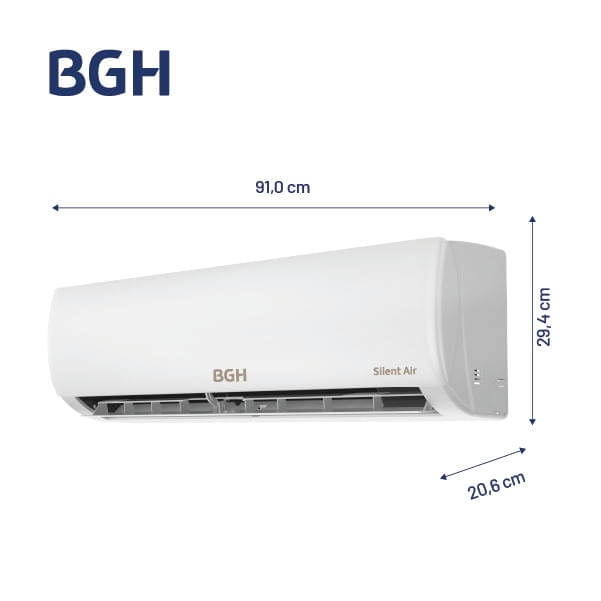 - Unidad interior (Ancho x Profundidad x Alto): 91,0 × 29,4 × 20,6 cm, con nivel sonoro desde 41 dB.