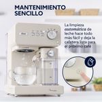 La bomba italiana de 15 bar asegura una extracción óptima, obteniendo un espresso con cuerpo, crema espesa y un sabor intenso en cada taza. El sistema de limpieza automática de la leche simplifica el mantenimiento, manteniendo la cafetera lista para el próximo uso sin complicaciones.