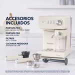 Incluye todo lo necesario para una experiencia completa: portafiltro para café molido, portafiltro para cápsulas Dolce Gusto, filtros para 1 y 2 tazas, cuchara medidora con prensador y un soporte de taza de acero inoxidable* ajustable para distintos tamaños. Sus depósitos de agua y leche son removibles, lo que facilita su llenado y limpieza, además de poder conservar el tanque de leche directamente en la heladera.