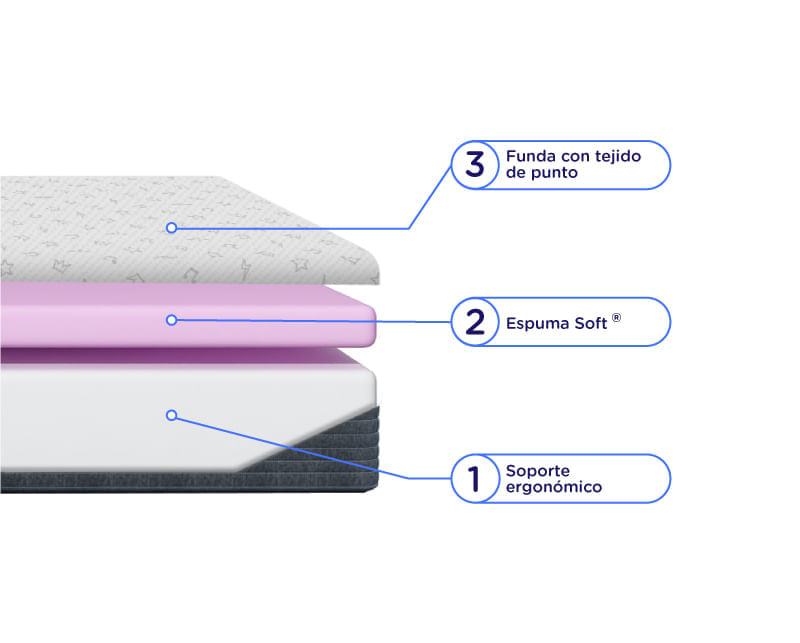 El colchón de espuma Freestyle Box se diseñó combinando 2 capas de espumas de alta densidad. Una capa de espuma Soft que ayuda a que tu colchón Freestyle se ajuste a vos brindando una suavidad inicial, y una capa de soporte que te da firmeza y soporte para un descanso reparador