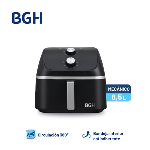 Air Fryer BGH 8,5 Litros BAF85MN25- Capacidad extra grande de 8,5 litros ideal para familias.