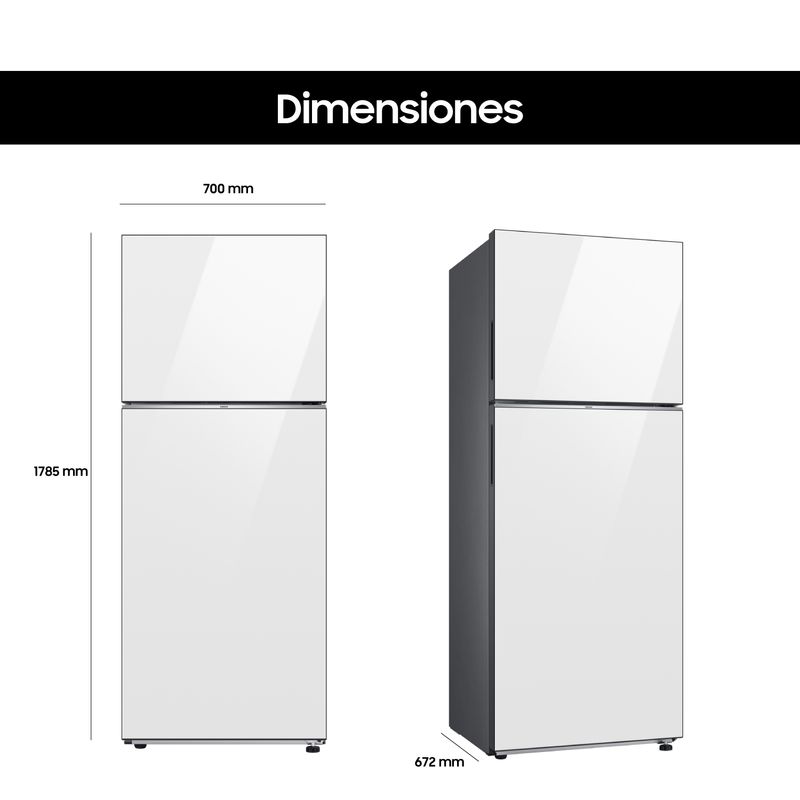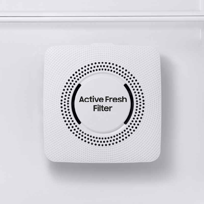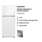 Forma parte de la línea Bespoke y cuenta con filtro Active Fresh, que ayuda a mantener un ambiente más higiénico dentro del refrigerador. Su display interno facilita el control de las funciones, y el compresor Digital Inverter asegura un rendimiento eficiente y duradero, respaldado por una garantía de 10 años, además de los 12 meses de garantía del producto.