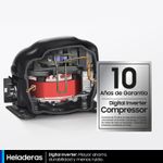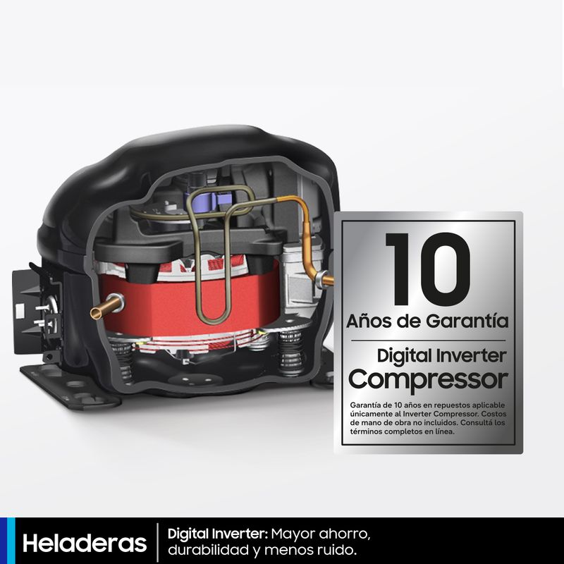 Su compresor Digital Inverter, con 10 años de garantía, garantiza durabilidad y eficiencia, respaldado además por la clasificación energética C. Incluye detalles que marcan la diferencia: Zona Óptima de Frescura para conservar carnes, frutas y verduras en su mejor estado, water dispenser integrado, display interno y luz LED para mayor comodidad.