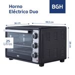 Con una capacidad total de 25L y una potencia máxima de 1380W, este horno eléctrico te permite preparar tus comidas favoritas de manera rápida y eficiente, logrando resultados perfectos en cada uso.