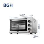 El BGH BHE45S22 es un horno eléctrico con un diseño moderno y funcional en color Silver. Cuenta con una puerta de vidrio amplia y comandos de control accesibles. Su capacidad es de 45 litros.