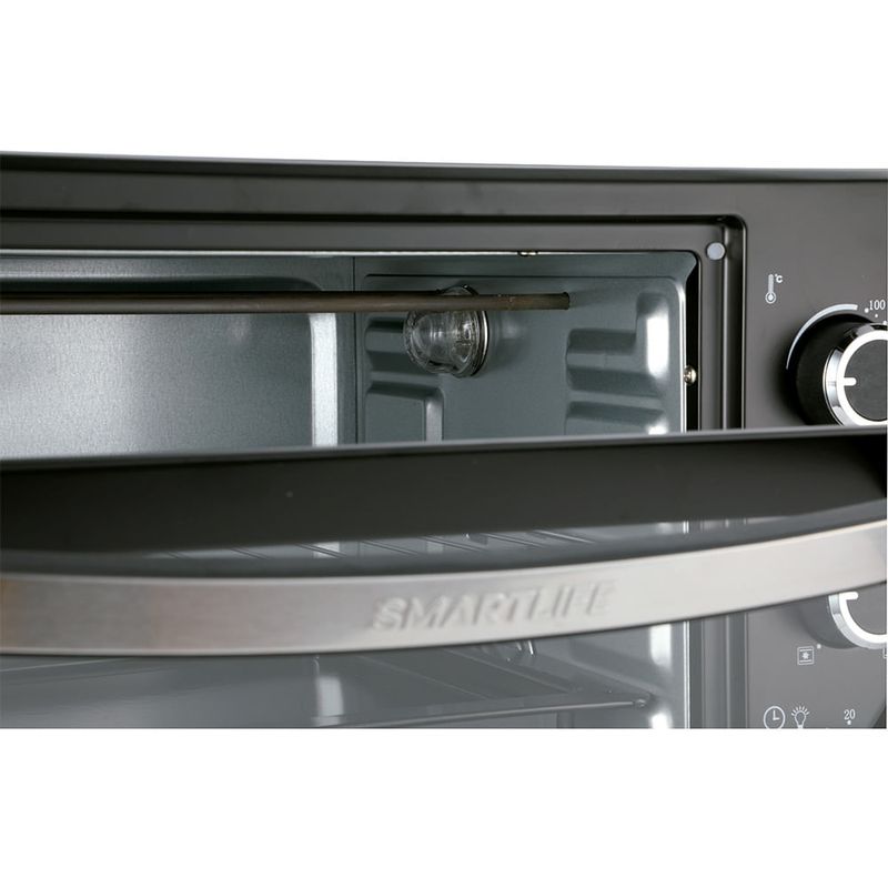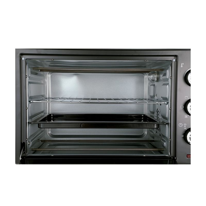Cuenta con luz interior para que puedas supervisar tus preparaciones sin necesidad de abrir la puerta, y un regulador de temperatura que va desde los 100°C hasta los 250°C, permitiéndote ajustar el calor ideal para cada receta. Además, su temporizador de hasta 60 minutos te ayuda a controlar los tiempos de cocción con precisión.