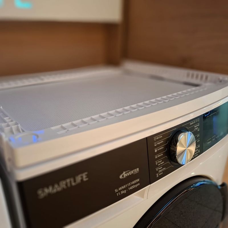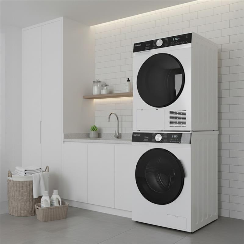 Accesorio de unión en torre de lavarropas con secarropas Smartlife color blanco. Compatible para apilar el lavarropas de 11.5kg SL-WMI1151400W con los secarropas de 8 y 10kg SL-DYHP08W / SL-DYHP10W