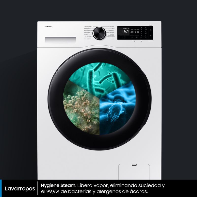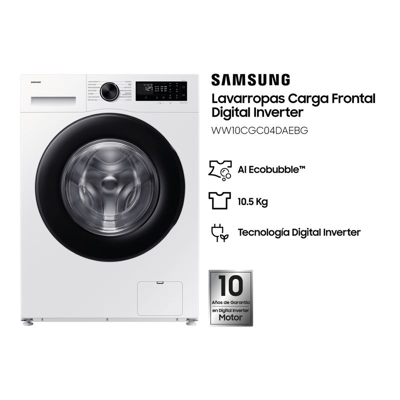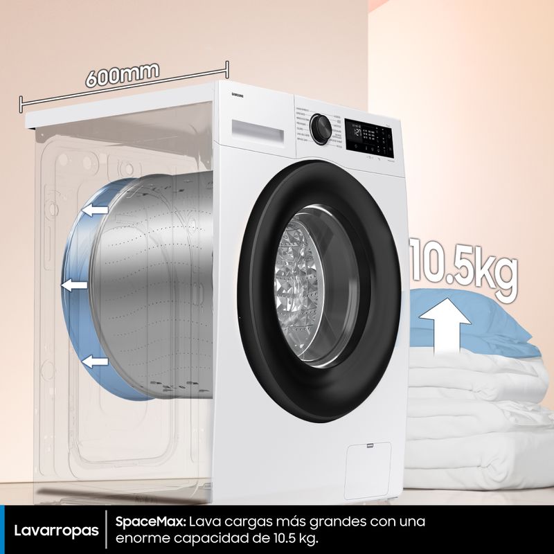 ¡Este lavarropas de alta tecnología es la opción ideal para quienes buscan un rendimiento superior, eficiencia energética y comodidad en su hogar! Con una capacidad de 10.5 kg, este modelo es perfecto para familias grandes o aquellos que necesitan realizar cargas más grandes de ropa. Además, su elegante diseño con puerta negra "Carved Door" y su panel LED aportan un toque moderno a tu hogar.