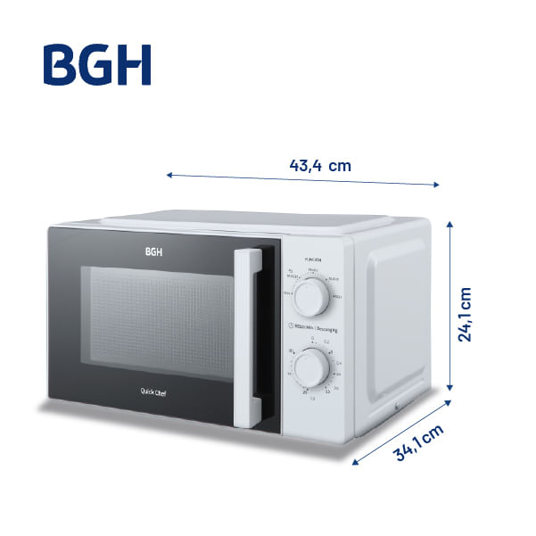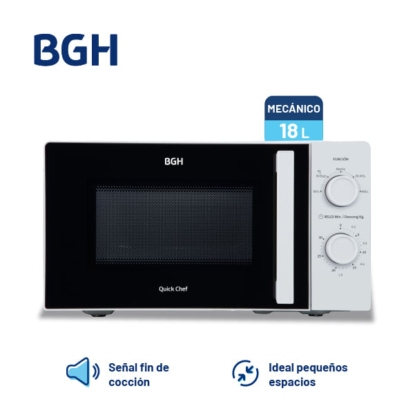 Perfecto para estudiantes, familias pequeñas o para sumar rapidez en tu rutina diaria, el microondas BGH es tu aliado para preparar platos de manera eficiente y segura.