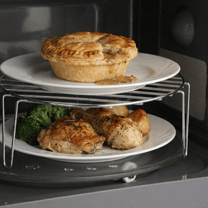 La rejilla de cocción, que facilita dorar y gratinar alimentos en menos tiempo, e incluso permite calentar dos platos al mismo tiempo, optimizando cada uso.