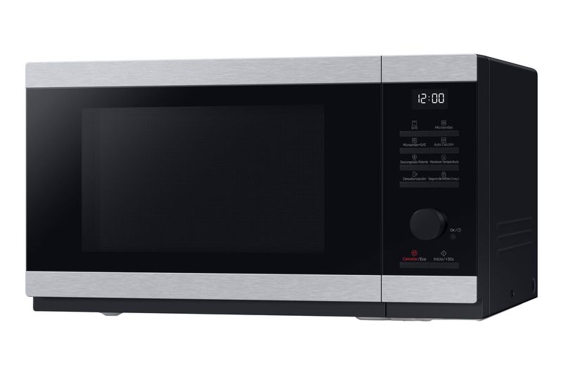 El Microondas Samsung Grill 32L Silver ofrece la combinación perfecta entre estilo y funcionalidad en la cocina. Con una capacidad de 32 litros y acabado en color Silver, este modelo es ideal para quienes buscan opciones de cocción avanzadas en un solo equipo. Diseñado con una manija escondida, panel de control Tact&Dial y pantalla LED en español, se integra de manera elegante y moderna en cualquier espacio.