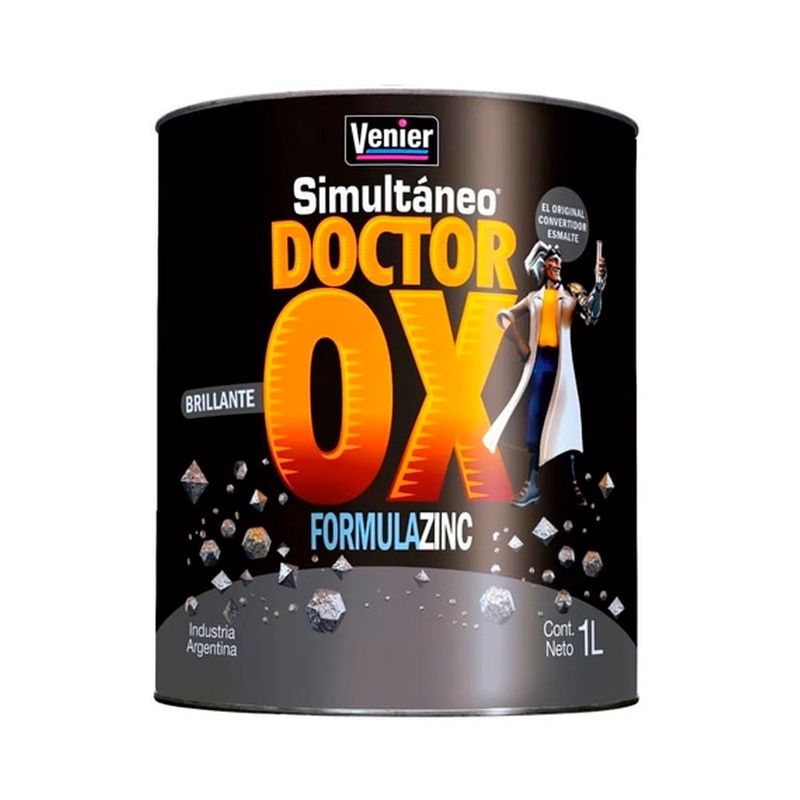 Simultáneo Doctor OX® Brillante de Venier es un revolucionario convertidor de óxido de acabado brillante. Su formulación exclusiva está compuesta por micropartículas de Zinc, que actúan transformando el óxido de hierro activo en óxido de hierro estable; poderosos inhibidores y estabilizadores de corrosión, lo que detiene definitivamente el proceso de oxidación de los metales. Doctor OX® decora y protege tus metales y maderas en la misma mano.