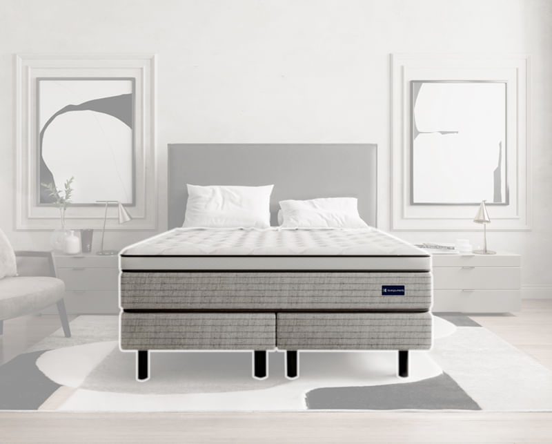 Su tapa matelaseada con efecto extra-acolchado realza la sensación de altura y volumen, aportando una superficie mullida y sofisticada que potencia la experiencia de descanso. Diseñado con un sistema ergonómico, cuida tu columna, mejora tu postura y asegura un sueño reparador noche tras noche.
