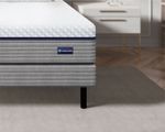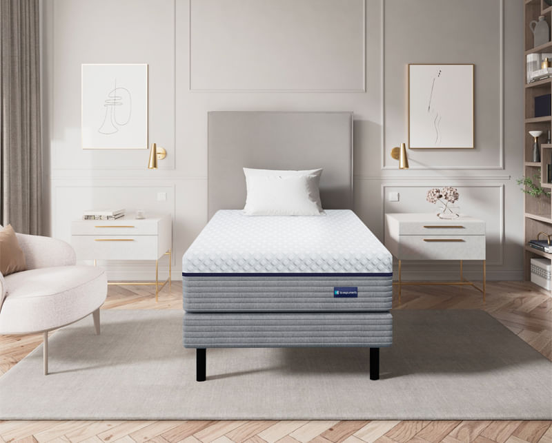 El colchón híbrido Jazz ofrece lo mejor de los dos mundos al combinar resortes pockets enfundados individualmente, que minimizan la transferencia de movimiento y brindan mayor durabilidad y excelente soporte, con nuestra exclusiva tecnología adaptativa Energex™ en las espumas, ajustandose a tu temperatura corporal, te recibe suavemente al acostarte y se adapta progresivamente para brindarte el soporte necesario y asegurar el mejor descanso. Además, su quinta capa de espuma CoolFlow™ Memory de celdas abiertas garantiza una rápida disipación del calor y la humedad, manteniendo tu cuerpo en la temperatura ideal. Diseñado con una funda lavable y desmontable, el colchón Jazz se adapta a tus necesidades de limpieza y mantenimiento, garantizando así un entorno higiénico y fresco en todo momento. Sus telas suaves con tejido de punto 3D proporcionan una transpirabilidad excepcional, asegurando una temperatura óptima para un descanso placentero. Equipado con un sistema ergonómico que cuida tu columna y mejora tu postura, el colchón Jazz te invita a disfrutar de noches de sueño reparador y sin interrupciones. Gracias a su tecnología avanzada, reduce la transferencia de movimiento, permitiendo que disfrutes de un sueño tranquilo y sin molestias. La altura total del colchón es de 29 centímetros. Peso máximo soportado: 130kg Por Persona/Lado Sensación: Es un colchón suave, confortable al acostarse y con un excelente soporte. Dormí tranquilo: El diseño de este modelo evita la transferencia de movimiento cuando se acuestan 2 personas La altura del sommier es de 30.5 cm (11.5 cm de estructura de madera maciza estacionada + espuma en 1 cm + 18 cm patas de Madera). · Posee un tejido lateral 100% Poliéster y una tela antideslizante de 100% Polipropileno