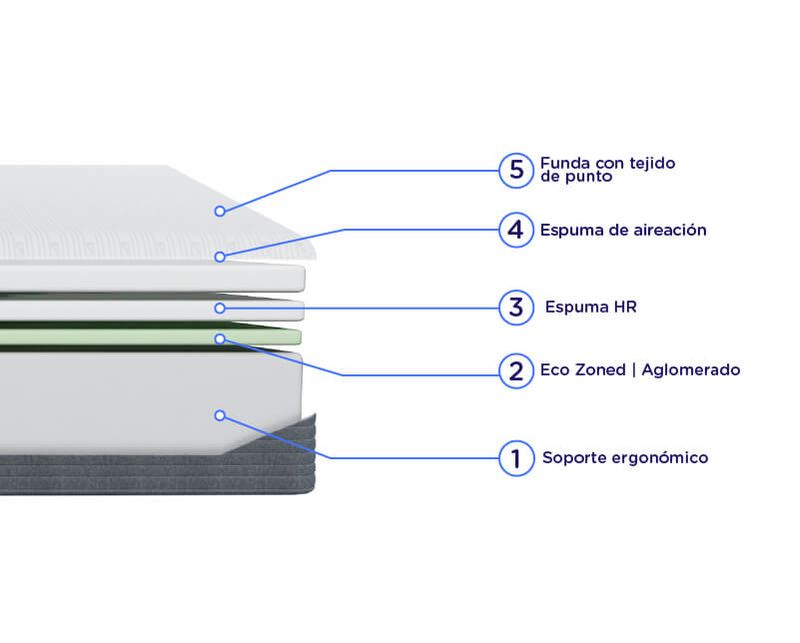 Además cuenta con una cuarta capa de espuma de aireación que tiene celdas de ventilación que regulan los niveles de humedad entre los materiales y tu cuerpo, brindándote una sensación real de frescura y garantizandote una experiencia de descanso placentera.